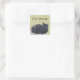 Painting of a tortoise shell cat resting in a cat beige cat bed, with a placeholder for your message, is printed on custom stickers. The background colour of pale green can be customised. Thank you for shopping CherylsArt on Zazzle.