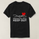 Silhouette image of a red heart, barbed wire silhouette in front of the heart. The text Restricted Area, Keep Out under the wire. Funny romantic one-of-a-kind customisable t-shirt for anyone. The black background. You can change both the images and the text. Do not forget to choose another colour, style, the gender of the apparel, more than 150 styles are available. Have fun!