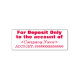 This clean rubber stamp design features the message "For Deposit Only to the account of", in addition to a personalised name and account number. It could be used by an administrative professional or a clerical worker to quickly add a restrictive indorsement to a check.