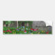 A quiet cemetery in the spring, filled a riot of cornflowers, poppies, dandelions, and many other flowers sprinkled though the green grass and among the gravestones. In the foreground is a tombstone engraved with a Celtic cross and the one word "Resurgam" - Latin for "I shall rise again".