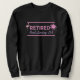 Retired And Loving It Ladies Fun Sweatshirt shown here in black and decorated with a pink palm tree and pink flamingo. This fun ladies sweatshirt text includes: RETIRED And Loving It. Makes a great gift for someone retiring.