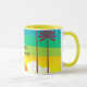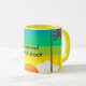 Retired Architect, art deco sunrise background, custom coffee mug.