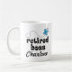 Stylish occupation retirement design says Retired Boss with cute blue butterfly logo and room for a personalised name.