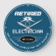 Retired electrician with funny slogan and years worked with white lines text on a blue background. Just use the customise this template option to change the slogan and years worked. Just choose the hand colour and size.