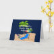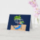 Palm trees and chaise lounge, "Retired...Every day is Saturday" button.