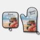 Put a smile on someone's face with this unique and funny retirement-themed pot holder and oven mitt set. The design features a bright colourful flamingo wearing a hat and sunglasses on the beach with the ocean in the background. The pot holder text reads, "Retired... not my problem anymore." The oven mitt text reads, "Officially Retired." (Also sold individually.) Available with black silicone or silver quilted backing. Pot holders and oven mitts are a great practical gift and perfect for a retirement party, Father's Day, Grandparent's Day gift, gift for a special relative, neighbour, friend, boss, coworker, or anyone enjoying retirement. Please browse our complete collection of flamingo-themed retirement gifts, cards, t-shirts, home decor, and more! Special design requests accepted.