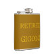 The flask itself is fine. It’s a cheap flask, obviously bought in bulk, however am prepared to overlook that. Given that it is a personalized item, I would have liked to have seen gift boxing instead of the generic packaging. Terrible printing, and/or quality. It’s a cheap, tacky vinyl. It is not cut straight and is also applied in a way that it is overhanging the bottom, causing the glue to catch on items and it will eventually roll and tear, damaging the wrap.