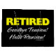 Retired: Goodbye Tension Hello Pension! Witty and funny Retirement Saying / Quote for anyone who is retiring. The black background can be changed to change to any colour you want.