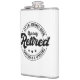 The flask itself is fine. It’s a cheap flask, obviously bought in bulk, however am prepared to overlook that. Given that it is a personalized item, I would have liked to have seen gift boxing instead of the generic packaging. Terrible printing, and/or quality. It’s a cheap, tacky vinyl. It is not cut straight and is also applied in a way that it is overhanging the bottom, causing the glue to catch on items and it will eventually roll and tear, damaging the wrap.