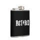 The flask itself is fine. It’s a cheap flask, obviously bought in bulk, however am prepared to overlook that. Given that it is a personalized item, I would have liked to have seen gift boxing instead of the generic packaging. Terrible printing, and/or quality. It’s a cheap, tacky vinyl. It is not cut straight and is also applied in a way that it is overhanging the bottom, causing the glue to catch on items and it will eventually roll and tear, damaging the wrap.