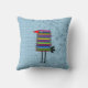 Retired Librarian "Book Bird" pillow.  A feminine and sweet, pale blue pillow created using a layered effect.  Background is blue with a layer of book page writing and artist drawn book bird design.   Back of pillow designed in coordinating colours. *All graphics created by artist Gail Gabel*