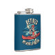 The flask itself is fine. It’s a cheap flask, obviously bought in bulk, however am prepared to overlook that. Given that it is a personalized item, I would have liked to have seen gift boxing instead of the generic packaging. Terrible printing, and/or quality. It’s a cheap, tacky vinyl. It is not cut straight and is also applied in a way that it is overhanging the bottom, causing the glue to catch on items and it will eventually roll and tear, damaging the wrap.