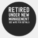 Retired new management see details classic round sticker