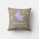 Retired Nurse Nap Pillow "Long Awaited Nap Pillow", light brown background with blue moon and grey stars, back of the pillow coordinates with words, "Sleep Well". A gift any nurse would appreciate and will last a lifetime.