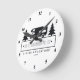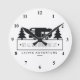 Inspirational camping wall clock for retirees who like to travel- Rustic black and white camping design features a classic vintage motorhome silhouette and pine trees. Black clock face numbers. Reads NOT ALL WHO WANDER ARE LOST below in whimsical letters. Option to customise text. Unique retirement gift for retirees who want to roam around in their RV. Or nice gift for any RVers or camping addicts. Option to add a background colour as well! Unique camping decor that would be perfect in an RV, log cabin, or fifth wheel camper. Great RV business office clock or for an RV salesperson, too.