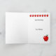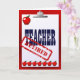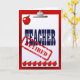 A graphic of a clipboard with paper and apples by artist/designer Charmaine Paulson on a Retired Teacher Greeting Card. The card has text templates for your personalisation.