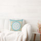 Retired Teacher Quote Pillow, "Wishing you all the joy, peace and happiness life has to offer", on a light blue background with artist created abstract centre in blue and cream tones.