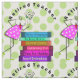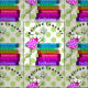 Adorable whimsical bird retired teacher fabric. Design also includes a colourful stack of books with retirement titles on a lime green polka dots and cream background.