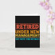 Retired Under New Management Funny Mens Husband Re Card