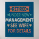Retired Under New Management See Wife For Details Retirement Gift. Perfect gift for your dad, mom, papa, men, women, friend and family members on Thanksgiving Day, Christmas Day, Mothers Day, Fathers Day, 4th of July, 1776 Independent day, Veterans Day, Halloween Day, Patrick's Day