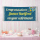 Perfect banner for your retiring co-worker, boss, or friend. A blue background with confetti stars personalised with the retiree's name.