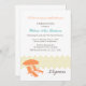 Beach umbrella and lounge chairs retirement party invitation in soft melon orange, yellow and aqua.