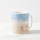 A pretty beach Coastal Seashell Retirement mug comprising of a watercolor coastal sandy beach and blue sea background with seashells and strings of lights. Makes a lovely retirement gift for your work colleague, co worker, employee, family member and friends. All text can be customised as needed then personalise with a name, message and date.