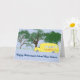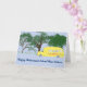Retirement card for a school bus driver, with an illustration of a school bus with illustrated kids in the bus, a driver, and trees and flowers lining the street.