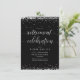 This elegant and festive retirement party invitation features silver (simulated foil) confetti with matching letters that say "Retirement Celebration" in an beautiful script font. The background colour is black, but can be changed to any colour of your choice. Customise the invite with your own information - an easy and simple way to create a personalised card. The back side of the card features a matching silver dotted line pattern - again with a black background that can be customised to any colour of your liking. A simple and elegant way to invite guests to celebrate a retirement.
