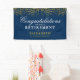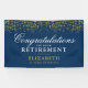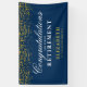 This banner is perfect for any retirement party. The design offers gold glitter confetti on dark blue background and is accented with script text.