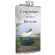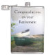 The flask itself is fine. It’s a cheap flask, obviously bought in bulk, however am prepared to overlook that. Given that it is a personalized item, I would have liked to have seen gift boxing instead of the generic packaging. Terrible printing, and/or quality. It’s a cheap, tacky vinyl. It is not cut straight and is also applied in a way that it is overhanging the bottom, causing the glue to catch on items and it will eventually roll and tear, damaging the wrap.