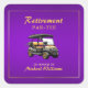 Retirement Elegant Golf Theme Cart Purple Gold Square Sticker