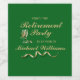 Celebrate a distinguished career with our Elegant Formal Retirement Party wine label! Featuring "Retirement Party" in a graceful script font, this design includes two golden champagne glasses against a sophisticated green background. The text is elegantly highlighted in golden shades, with a stylish curly ribbon between the details. Perfect for family or corporate organizers, this customisable label allows you to easily add the name making it a comprehensive choice for a memorable send-off.