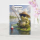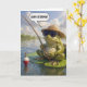 A frog wearing sunglasses and a straw hat sits on a lily pad in a lake, holding a fishing rod.