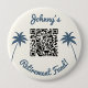 Elevate your retirement celebration with this personalised QR code button! Featuring a design with two blue palm trees and the text 'Johnny's retirement fund!', this button allows guests to scan the QR code and contribute to the retiree's special fund. Make a meaningful contribution to honour Johnny's retirement journey!