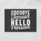 Retirement Gift, Goodbye Tension Hello Pension Business Card
