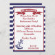 Fun and colourful red,white and blue nautical themed Retirement invitation or annoucement. Graphic art design features a festive ribbon with the word retirement. Attractive blue and white stripped background with an red accented border insert. Included is a blue nautical anchor. Invite your friends to a surprise retirement party, retirement luncheon, or retirement celebration. Great for nautical themed events, sailors, Navy retirement, Marine Retirement and more.