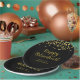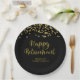 Black and gold theme party plates with a gold glitter confetti border and the title HAPPY RETIREMENT in a modern script font. Personalise it with the retiree's name, number of years of service and the company, school or organisation's name or personal message. Contact the designer via Zazzle Chat or makeitaboutyoustore@gmail.com if you'd like this design modified, on another product or would like coordinating items.