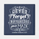 A striking thank you or personalised appreciation design. This beautiful typography design would be perfect for a pastor, physician or teacher retirementgift. The quote 'Never forget the difference you've made' is featured in white typography on a dark blue background. Add your own message or recipients name to make truly unique and personal memento.