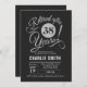 Retirement party invitation in black chalkboard pattern and faux glitter silver. Can be personalized into any year.