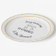Add extra style to your retirement party tables with these custom paper plates. The plates display the message 'Congratulations On Your Retirement' in script typography, and can be personalised with a name. Two elegant glasses of sparkling champagne are pictured for a celebratory look. The design is mostly white, with black text and a double faux gold band around the edge.
