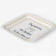 Add some extra custom chic to your retirement party tables with these square paper plates. The plates display the message 'Congratulations On Your Retirement' in script typography, and can be personalised with a name. Two elegant glasses of sparkling champagne are pictured for a celebratory look. The design is mostly white, with black text and a double faux gold border around the edge.