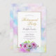 A blue and pink floral retirement party invitation featuring a gold and pastel painted watercolor border.