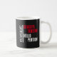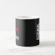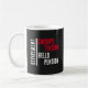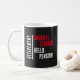 Funny retiree quote typography that says: "Goodbye Tension, Hello Pension" Retirement Coffee Mug. Get ready to chuckle with our hilariously clever saying for the retiree! A fun gag gift to say farewell to the stress and work of a job but also to welcome in a life of leisure and relaxation with open arms. Trendy black and white (red) colours.