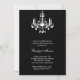 A beautiful crystal chandelier on a evening black background accents this retirement party invitation and sets an elegant tone to the event.