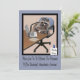 Invite your guests to a retirement party for your wonderful administrative assistant with an adorable racoon holding a mouse sitting at a desk looking at a laptop in an office chair. Background is a pretty blue pattern.