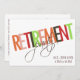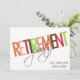 This colourful retirement invitation is great for any job description. It's quite versatile. In all capital letters in assorted colours at a slight slant sits in the centre of the invite and has the text party written in cursive underneath. It's simple, yet so effective. For that special someone you know who is retiring...give him or her something to remember. Praise them for a job well done by sending out these lovely invitations to celebrate a great time.