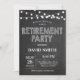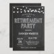 Retirement Party Invitation Card with Chalkboard Background String Lights. Black and White. For further customisation, please click the "Customise it" button and use our design tool to modify this template.