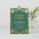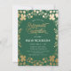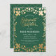 This classy retirement party invitation has a vintage feel and features an illustrated floral border and the words "Retirement Celebration" in a gold colour (simulated gold foil). The background shown is a Kelly green, but can be customised to any colour you choose. The back of the invite includes a gold colour quatrefoil pattern with a matching green background that can also be swapped out. The text is customisable for your special event.