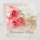 A beautiful delicate image of a rose in soft pink tones. in the background is a string of pearls. The whole effect is softened by a delicate feather. A delightful retirement party invitation. Change the back to your own party details